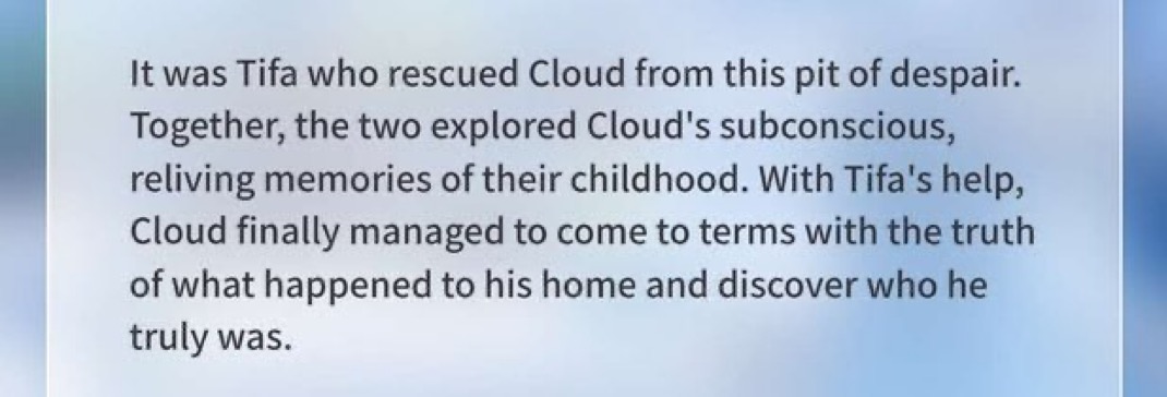 In 2023, Tifa got a Christmas outfit and wallpaper where she is handing someone a gift. In 2024, it was revealed that Cloud also had a Christmas outfit matching Tifa’s, and the gift she was giving was to Cloud!